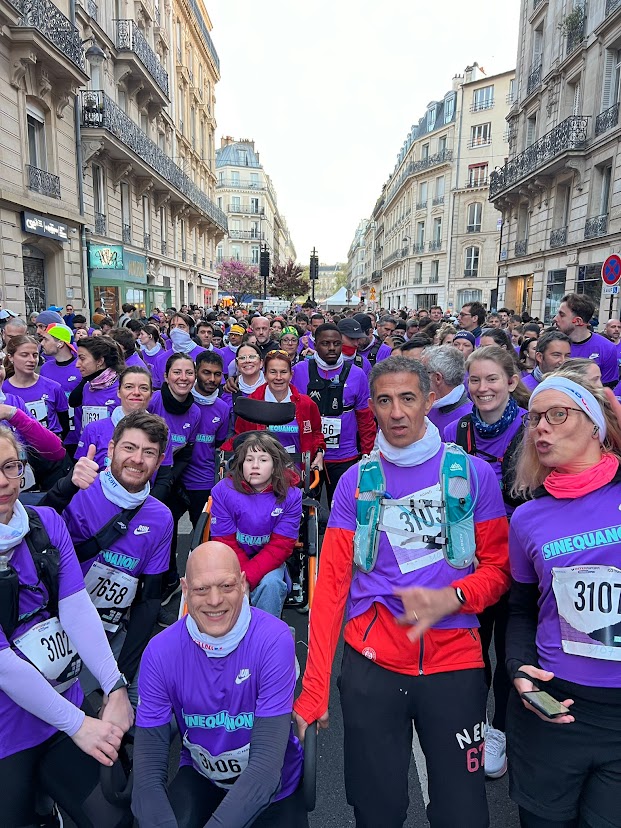 Sébastien Tyrand « Première expérience en Joëlette, et c'est une révélation ! Que ce soit devant ou derrière, on devient un maillon essentiel pour protéger Mathilde des secousses - un vrai défi sur les pavés parisiens ! 😉 Contrairement au running classique, ici on vit une aventure collective, portée par une foule qui nous transcende. »