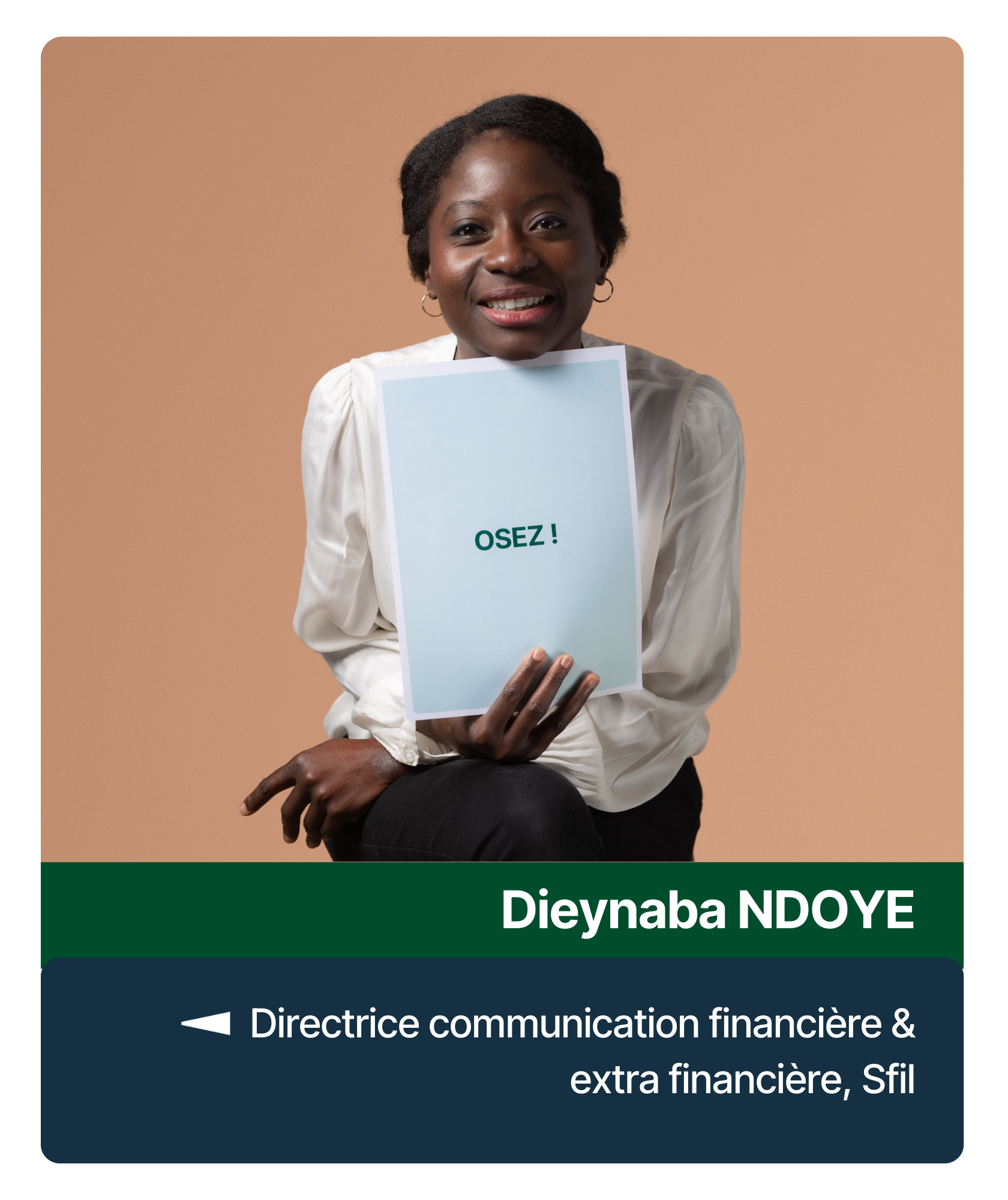 Ce pourrait être la devise de Dieynaba, qui s’amuse à paraphraser « Tremblez mais oser », un ouvrage écrit par Susan Jeffers. Il faut dire qu’elle a osé, Dieynaba, et plusieurs fois. « À chaque fois que j’ai changé de poste et/ou d’employeur, j’ai la sensation d’avoir osé. Parce qu’à chaque fois, je quitte un certain confort, un terrain connu. C’est toujours un challenge, une remise en cause d’une partie de soi », affirme Dieynaba, Directrice communication financière & extra financière chez Sfil.