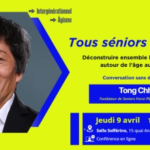 Event: [Invitation] Conférence « Tous séniors un jour » avec Tong Chhor [Invitation] Conférence « Tous séniors un jour » avec Tong Chhor Date de l'évênement Date de l'évênement 9 avr '26 12:00 - 13:00 (CEST) Type d'événement This event has type Évènements Alter Egales En savoir plus sur [Invitation] Conférence « Tous séniors un jour » avec Tong Chhor