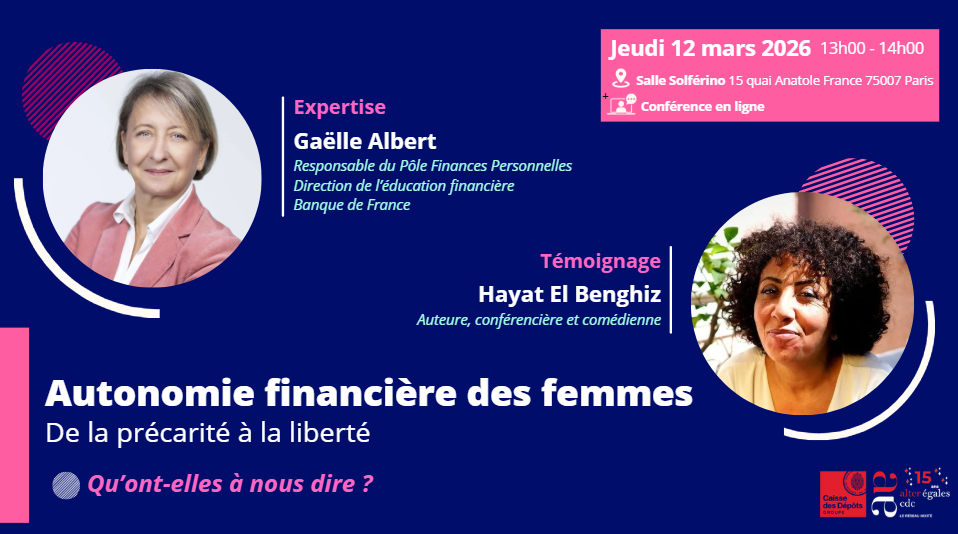 Le réseau Alter Egales, en collaboration avec la Banque de France, vous propose de croiser les regards pour lever le voile sur un enjeu essentiel : l’autonomie financière des femmes.
